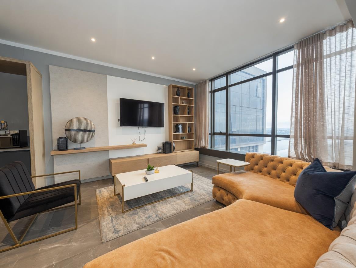 Perfectly located just moments from Nelson Mandela Square, Sandton City, and the Sandton Gautrain Station, this penthouse offers unmatched access to top-tier dining, shopping, corporate hubs, and major transport routes.
